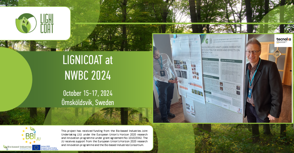 Our project coordinator, TECNALIA, showcased our LIGNICOAT solutions at the Nordic Wood Biorefinery Conference 2024, held on October 15- 17 in Örnsköldsvik, Sweden. The conference attracted a significant audience of approximately 200 attendees, representing a diverse range of stakeholders within the biorefinery sector. This included scientific community members, industry representatives and their customers, and potential investors.